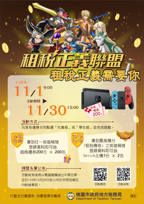 傳奇加碼抽:拿到最高積分「租稅傳奇」之英雄稱號,即可加碼抽Switch主機1台,名額2名。 |