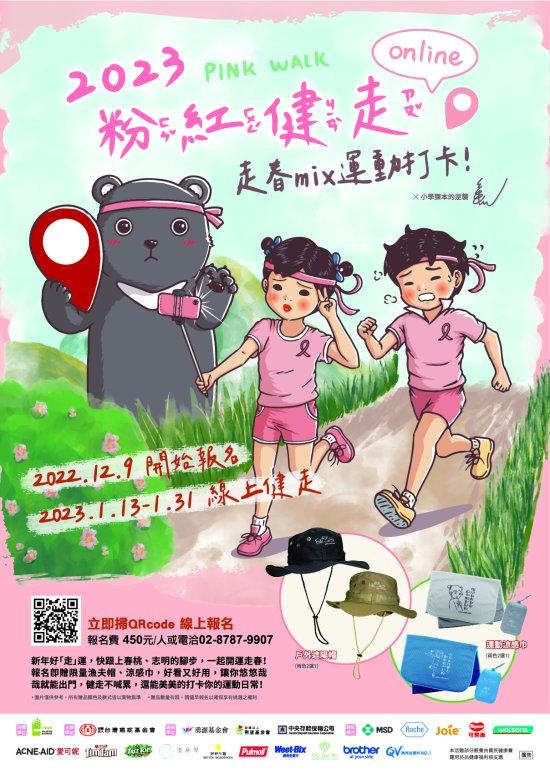 為提高國人對乳癌防治的重視,並養成規律運動的習慣,財團法人臺灣癌症基金會(以下簡稱基金會)擬於1月7日至1月31日辦理「2023粉紅健走:走春mix運動打卡」活動。 |