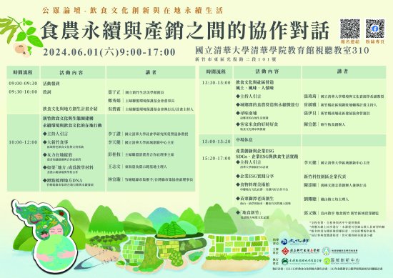 | 轉知國立新竹生活美學館與教育部國民及學前教育署共同主辦之「『食農永續與產銷之間的協作對話』公眾論壇」宣傳海報1份。 |