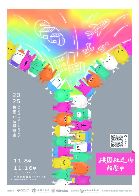 一、 為呈現桃園市推動社區總體營造成果,邀請各單位夥伴一同體驗桃園社造「解壓縮」的瞬間,一次展開市府跨局處、區公所及社造點等,超過90個單位的行動方案與成果,完整呈現桃園文化的流動、交織與共生。
